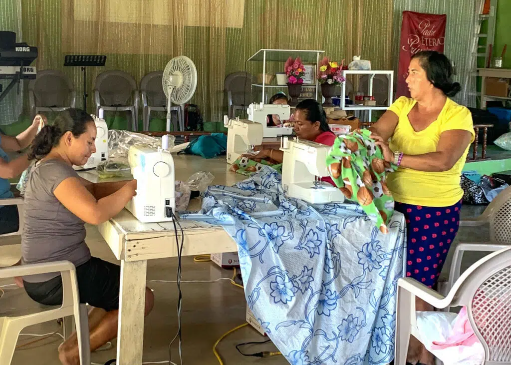 We all know mastering an unfamiliar skill as an adult is challenging, but the ladies of the village have taken on learning to sew with eagerness. From unsure beginnings in pattern cutting, they now confidently sell their creations to their friends and neighbors. Thanks to donations of fabric, sewing machines, and supplies, these ladies started a cooperative called Santa Familia Sewing Sisters. They are not only gaining expertise in sewing, but they are learning what it takes to run a business. “Being a part of this circle of women has allowed me to become a contributing part of this wonderful fellowship and I’ve gained some lovely friends,” said one volunteer.